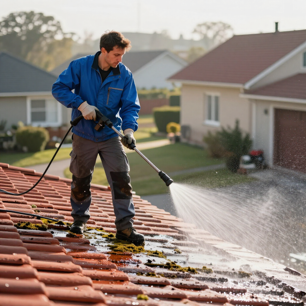 Dak renovatie met hogedruk reinigen en coaten